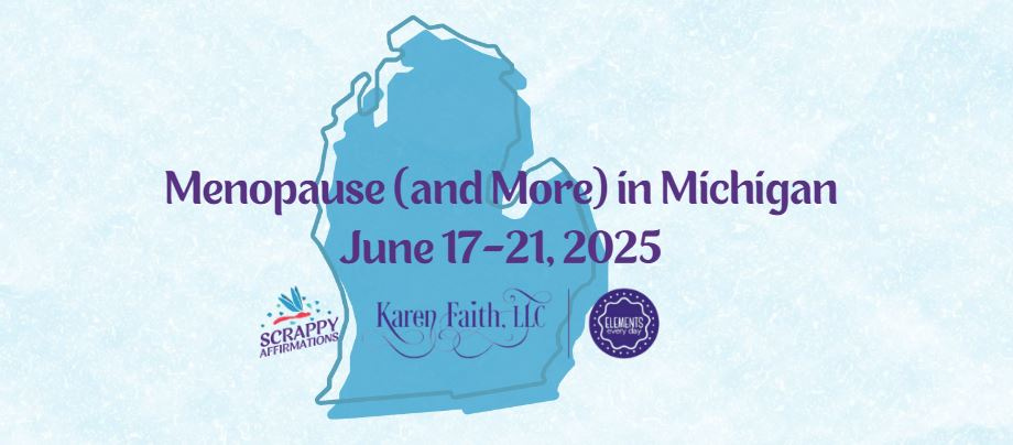 June 18-21 it’s time for Menopause (and More) in Michigan, the Scrappy Affirmations MMM Tour. I’m partnering with Karen Faith and Elements Every Day to offer some of my favorite programs in the Detroit area.
