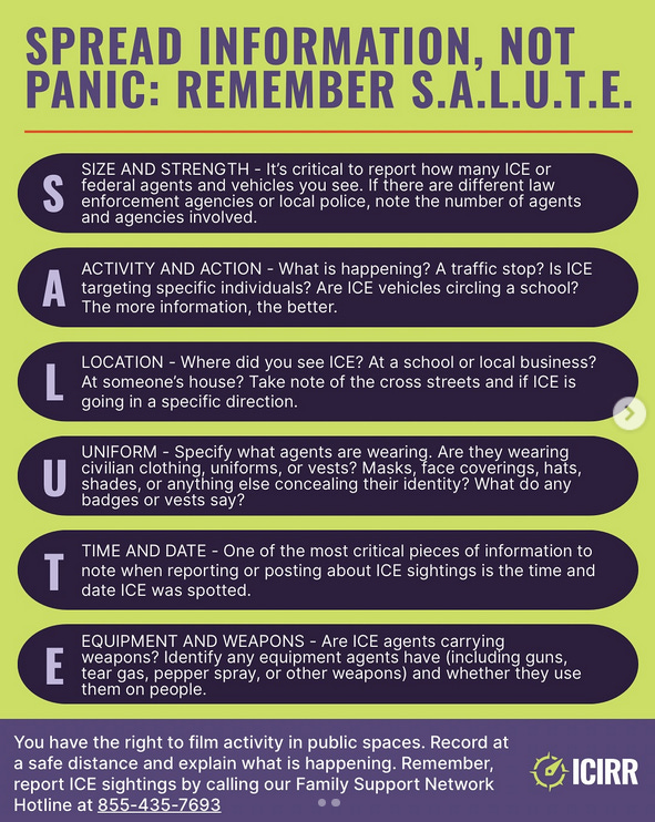 My point is that I made a song that captures the essence of SALUTE and can help you remember what to do if you encounter ICE. It’s set to the tune of that old summer camp/Girl Scout gem, “Do Your Ears Hang Low?” Check it out.